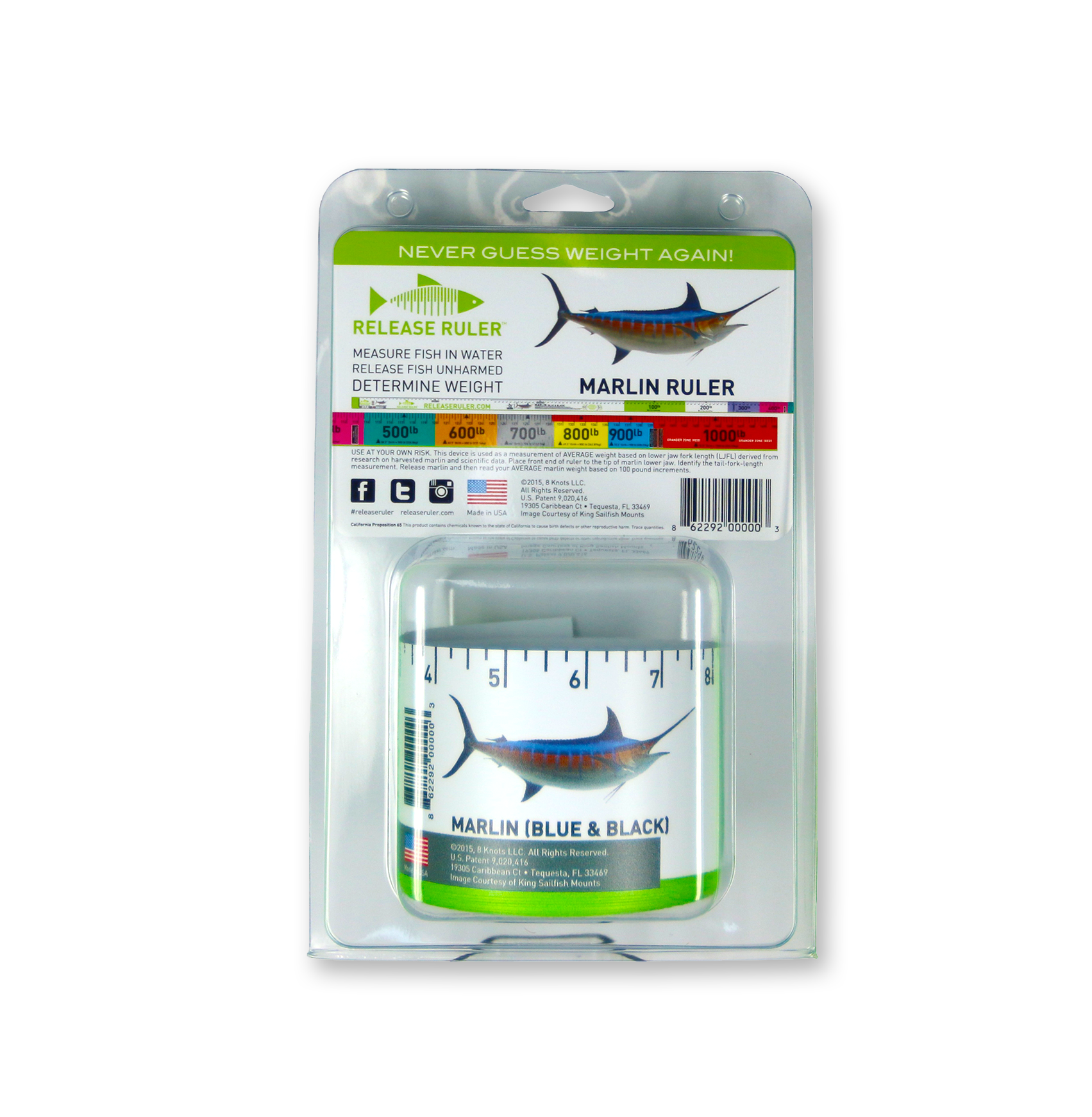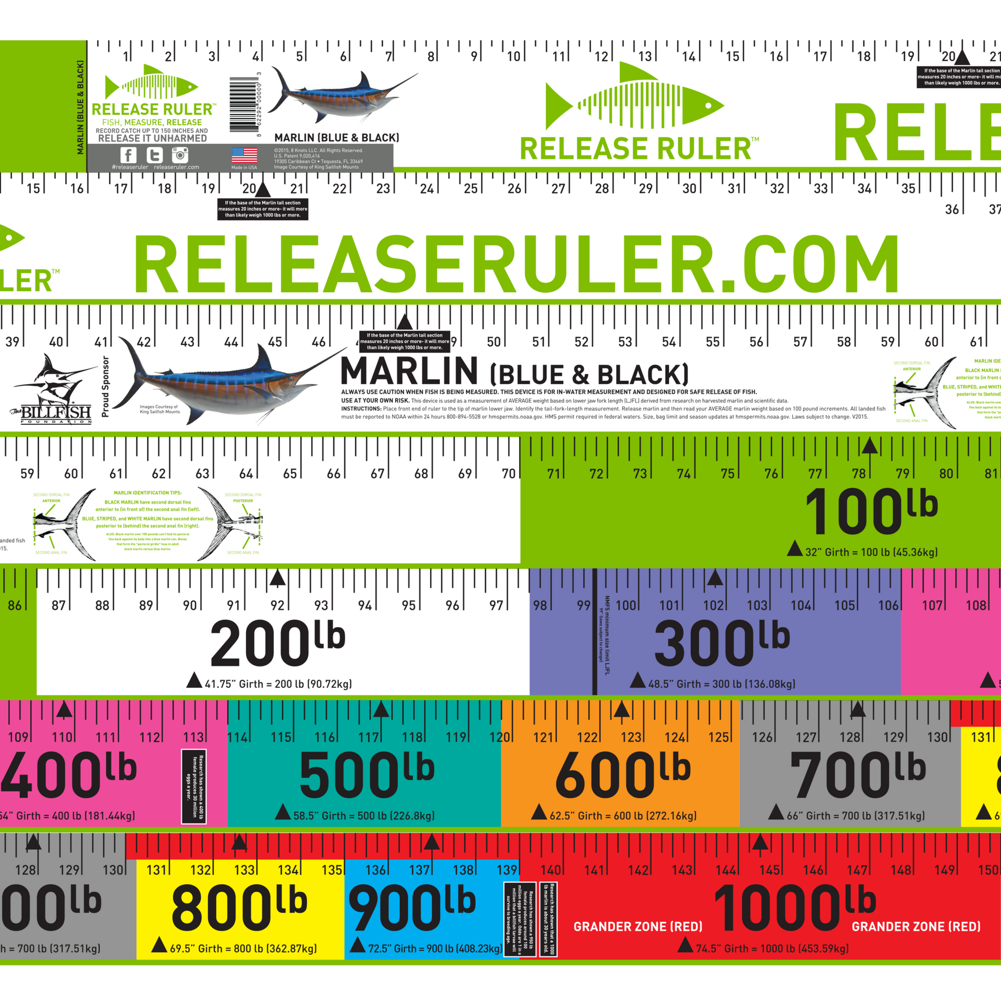 Stop Guessing! The Patented Marlin Ruler displays average weights in 100 pound increments. Simply place the ruler over your marlin and read the tail fork length estimate. The rulers are heavy duty, water resistant and only take seconds to use. Each ruler also has the HUGE zone to designate a grander size marlin and part of the proceeds benefit The Billfish Foundation.